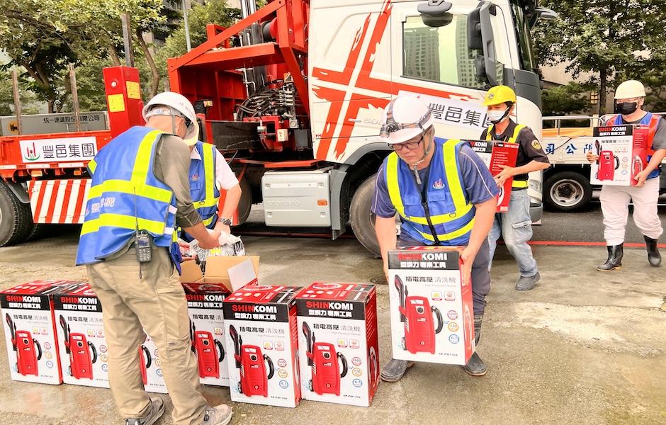 強颱「樺加沙」重創花蓮,導致堰塞湖潰堤,造成道路坍方,房舍傾毀、電力通訊中斷,災情尤以光復鄉最為慘重,豐邑集團第一時間啟動緊急支援機制,立即聯繫協力廠商緊急調度50台單輪車與10台高壓沖洗機,於9月26日派車火速送抵光復鄉,協助居民清除淤泥、搬運土石,盼能即刻投入使用,為救援與重建爭取時間。