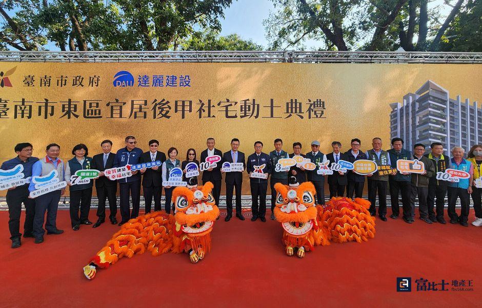 台南市政府今(22)日在平實重劃區舉行的「東區宜居後甲社會住宅動土典禮」,為公辦都更案,由達麗建設申請容積獎勵回饋之結果,並由開發商興建獨棟社會住宅,未來將推出地上13層、地下4層、規劃住宅175戶(提供1房127戶、2房48戶),預計118年完工,並交由政府進行社宅安排;市長黃偉哲表示,此案為市府公私協力推動都市更新的代表案例,市府透過都更機制取得175戶社宅,不僅節省約20億元公帑,更實現公部門與民間投資者共創多贏,展現打造宜居城市的具體成果。